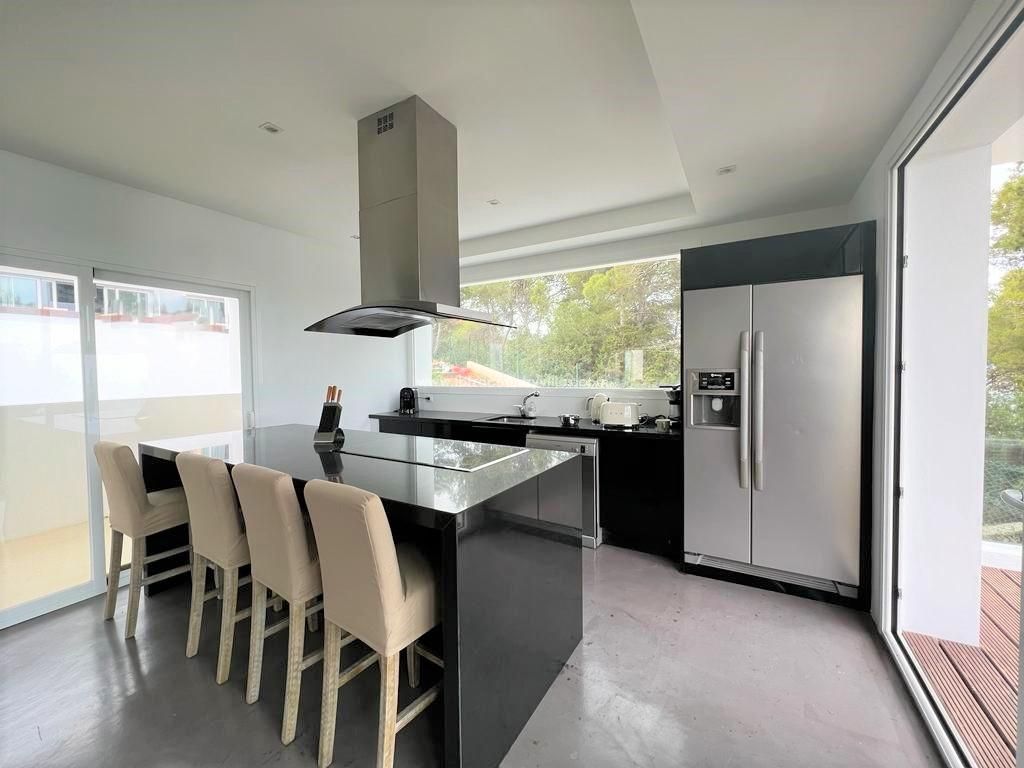 The property features 4 bedrooms with en-suite bathrooms, a furnished and well-equipped kitchen with top-brand appliances, a spacious living room with dining area, large terraces with outdoor zones, and a beautiful rooftop terrace with a jacuzzi.