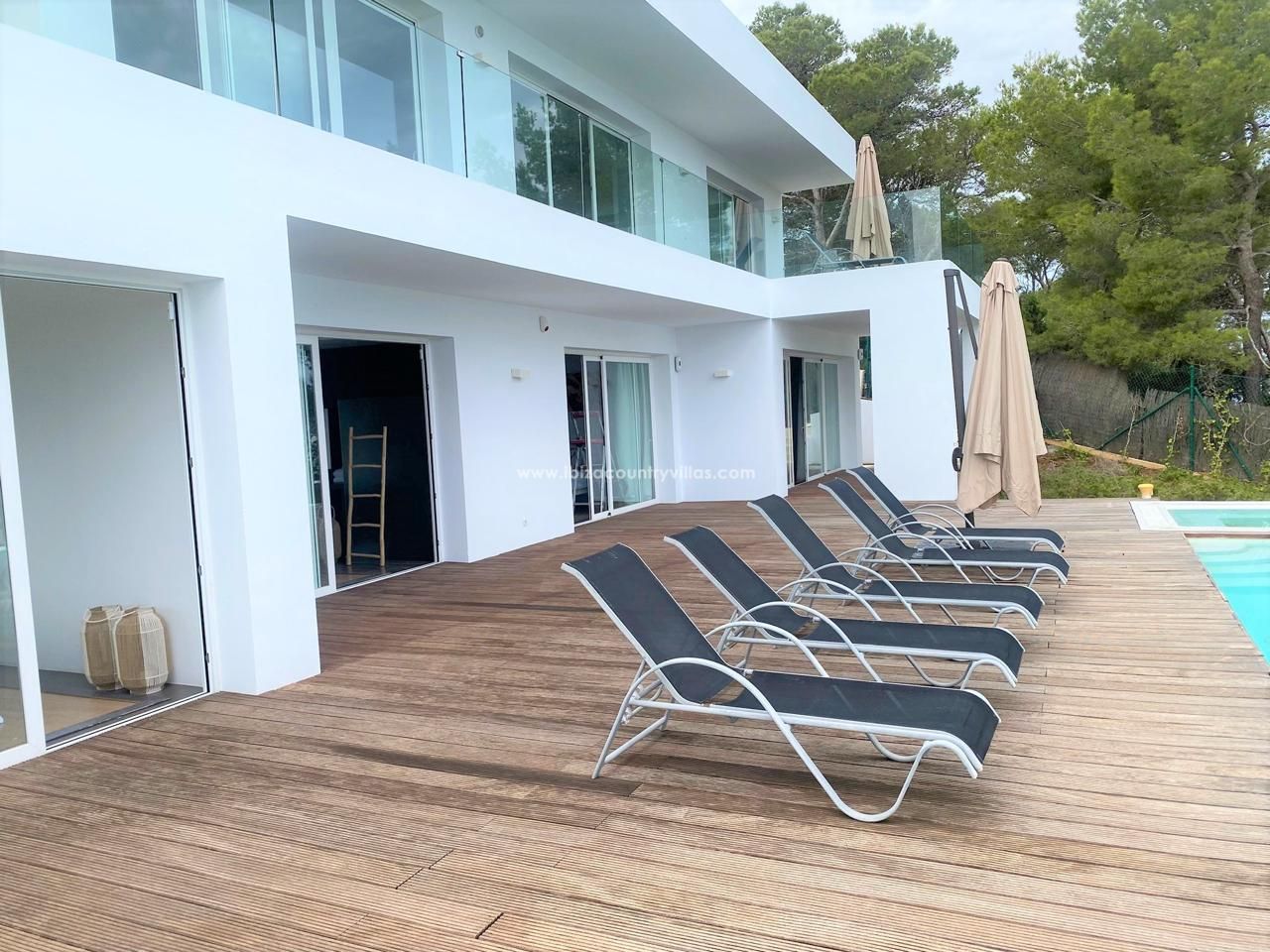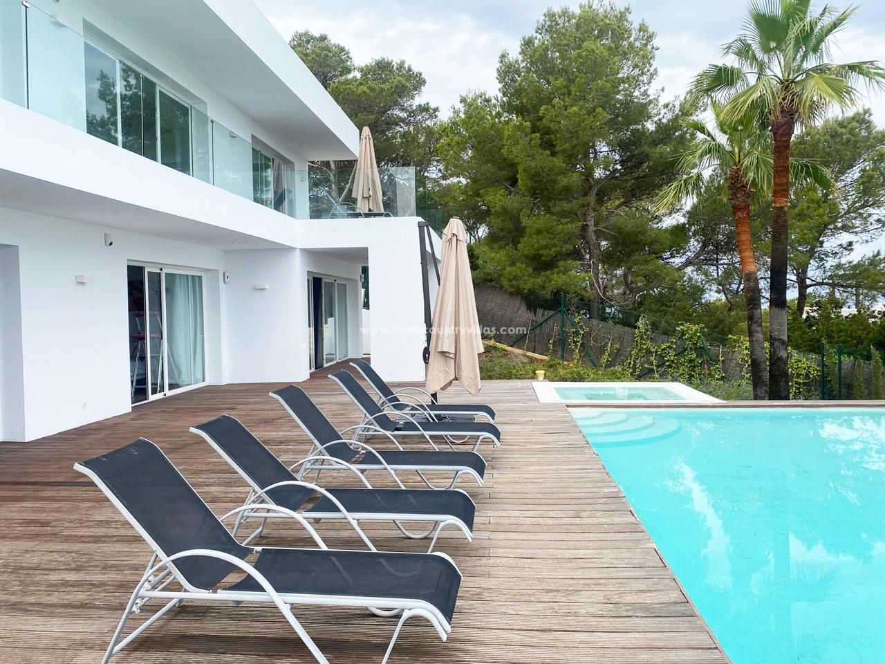 From all the rooms in the house, you can enjoy the endless horizon and views of the sea, coves, and surrounding pine and juniper mountains. Of course, the feeling is intensified when enjoying this environment from the outdoor dining area on the deck, from the jacuzzi, the pool, or any of the multiple cozy corners arranged outside the villa.