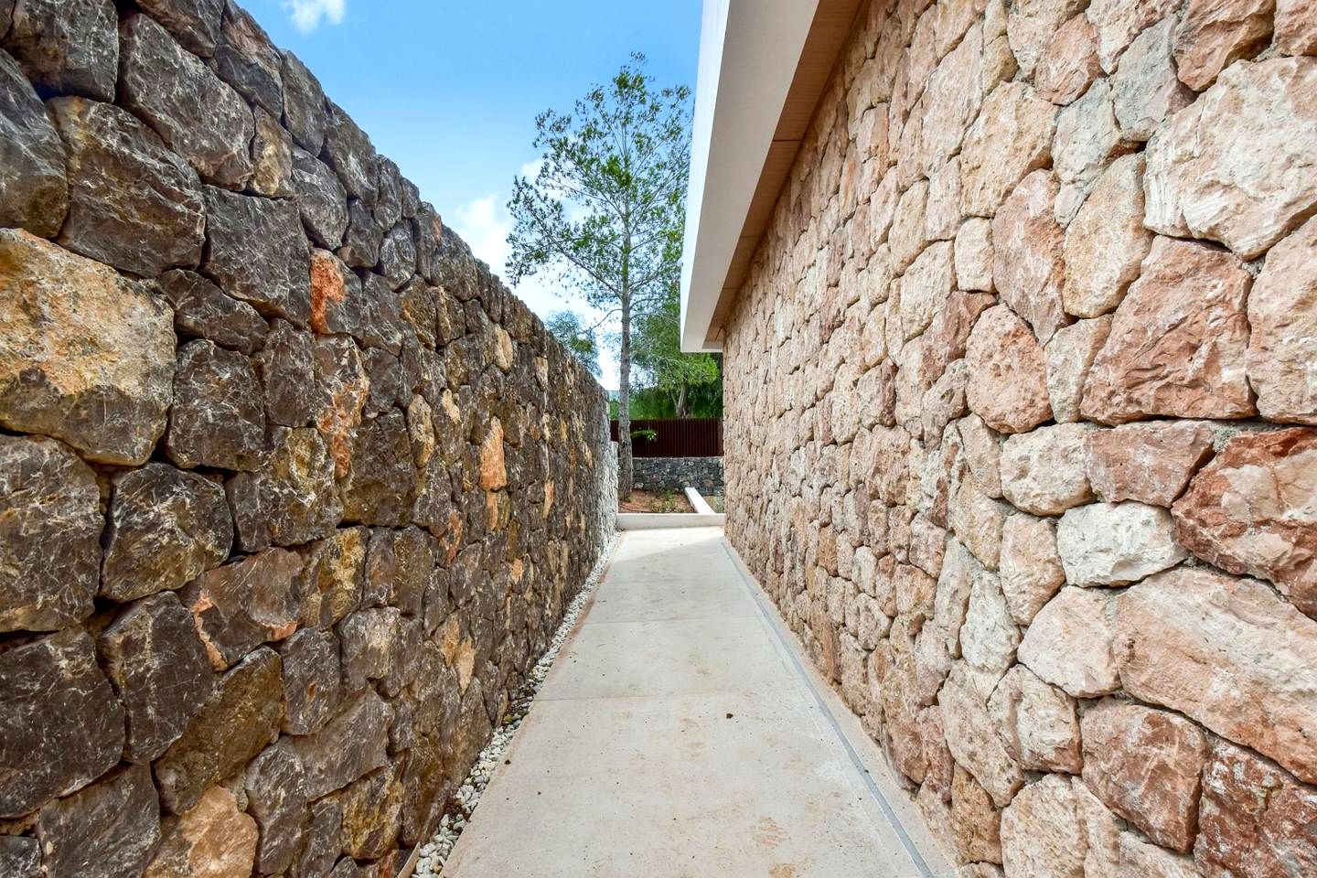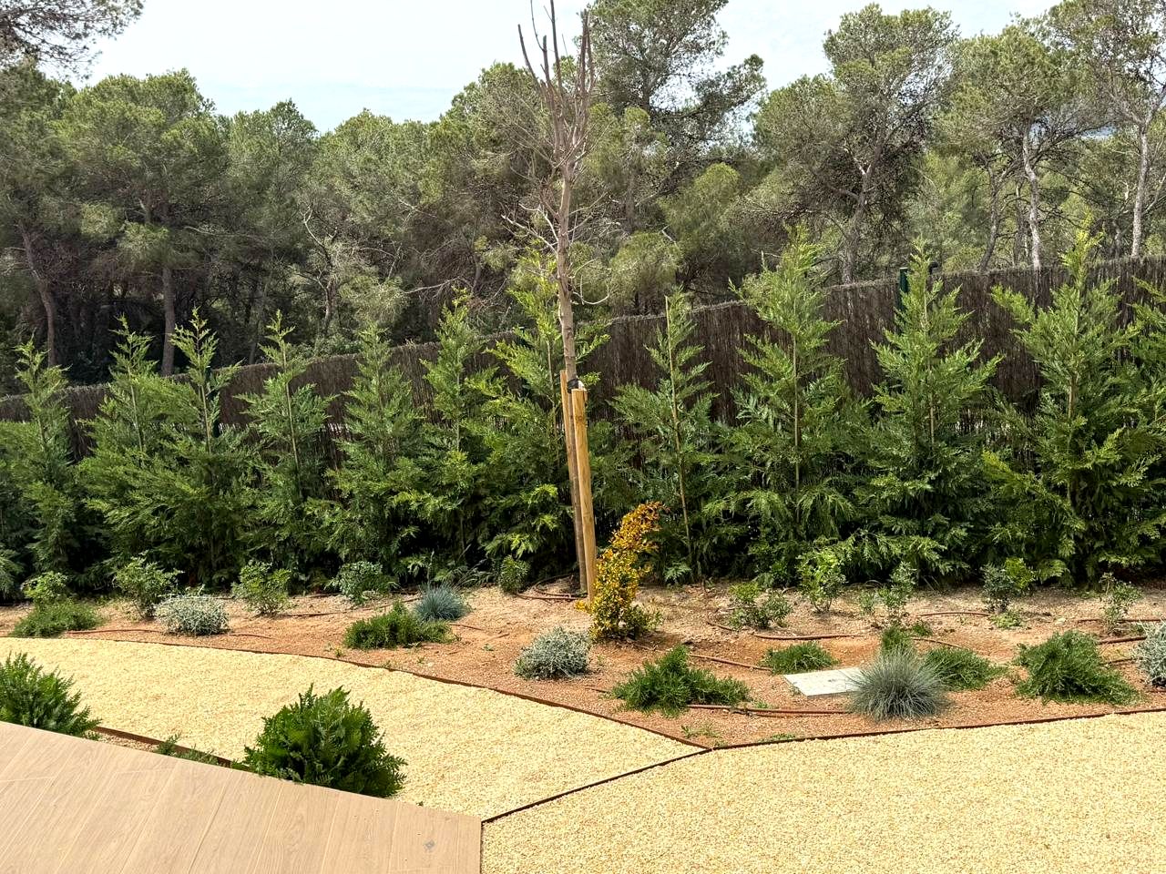 Cada una de las viviendas ha sido diseñada con una arquitectura única y elegante, respetando la esencia del paisaje ibicenco. Los árboles y plantas autóctonos no solo se preservan, sino que se integran en los propios jardines privados de cada villa, creando un diálogo armonioso entre lo construido y lo natural.