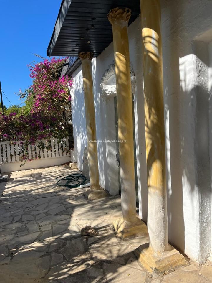 La villa desprende un encanto palaciego y mediterráneo, con toldos de estilo clásico, detallados mosaicos y acabados tradicionales que evocan una elegancia atemporal. Su distribución en diferentes niveles aporta dinamismo y amplitud, mientras que las amplias terrazas y la gran piscina invitan al relax y al disfrute del estilo de vida ibicenco. Desde varios puntos se aprecian impresionantes vistas a la montaña y un entorno tranquilo y agradable.