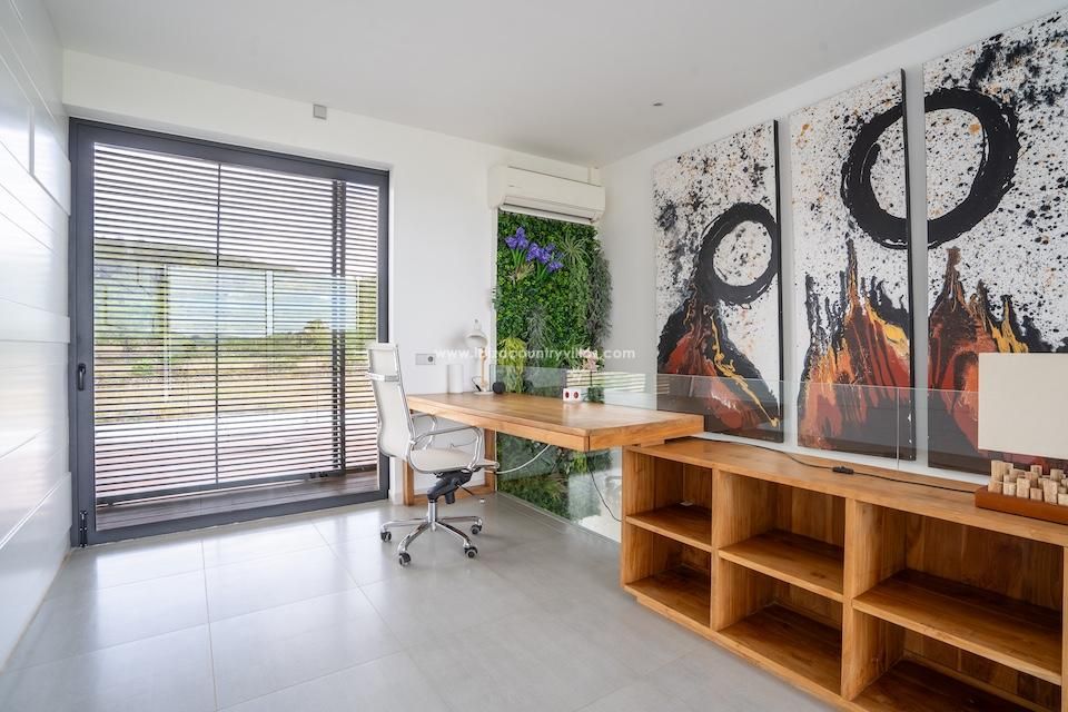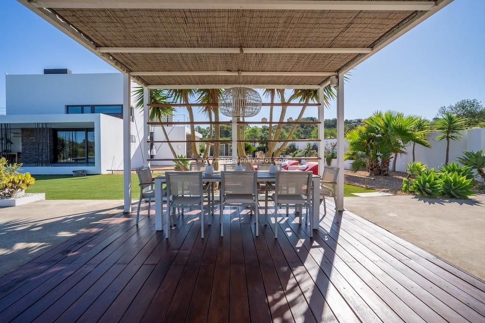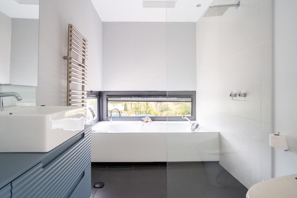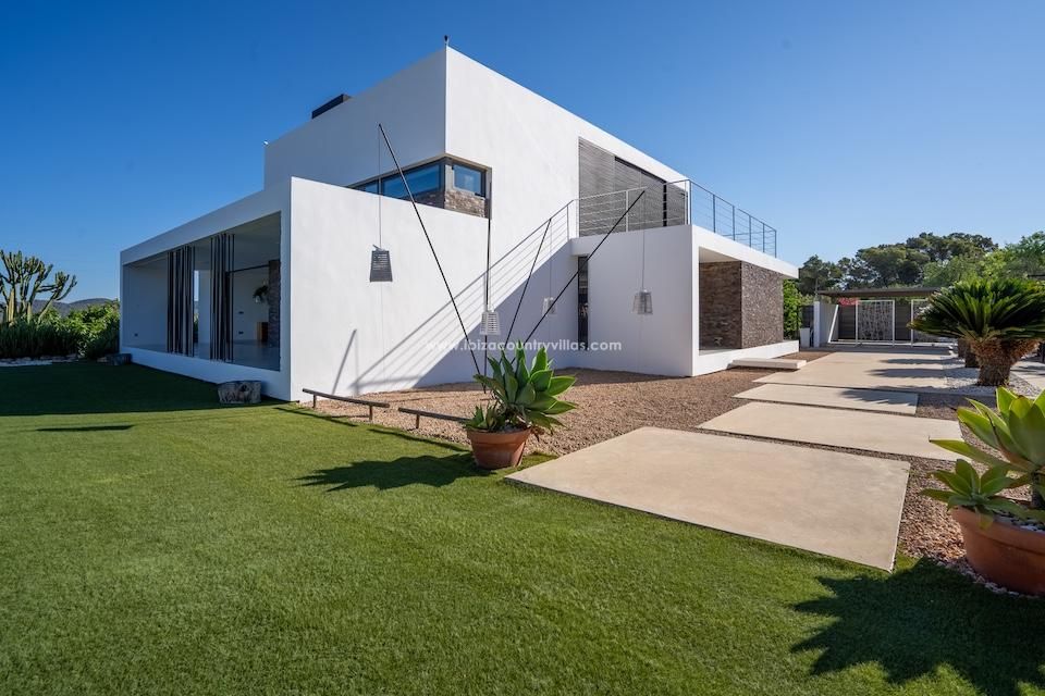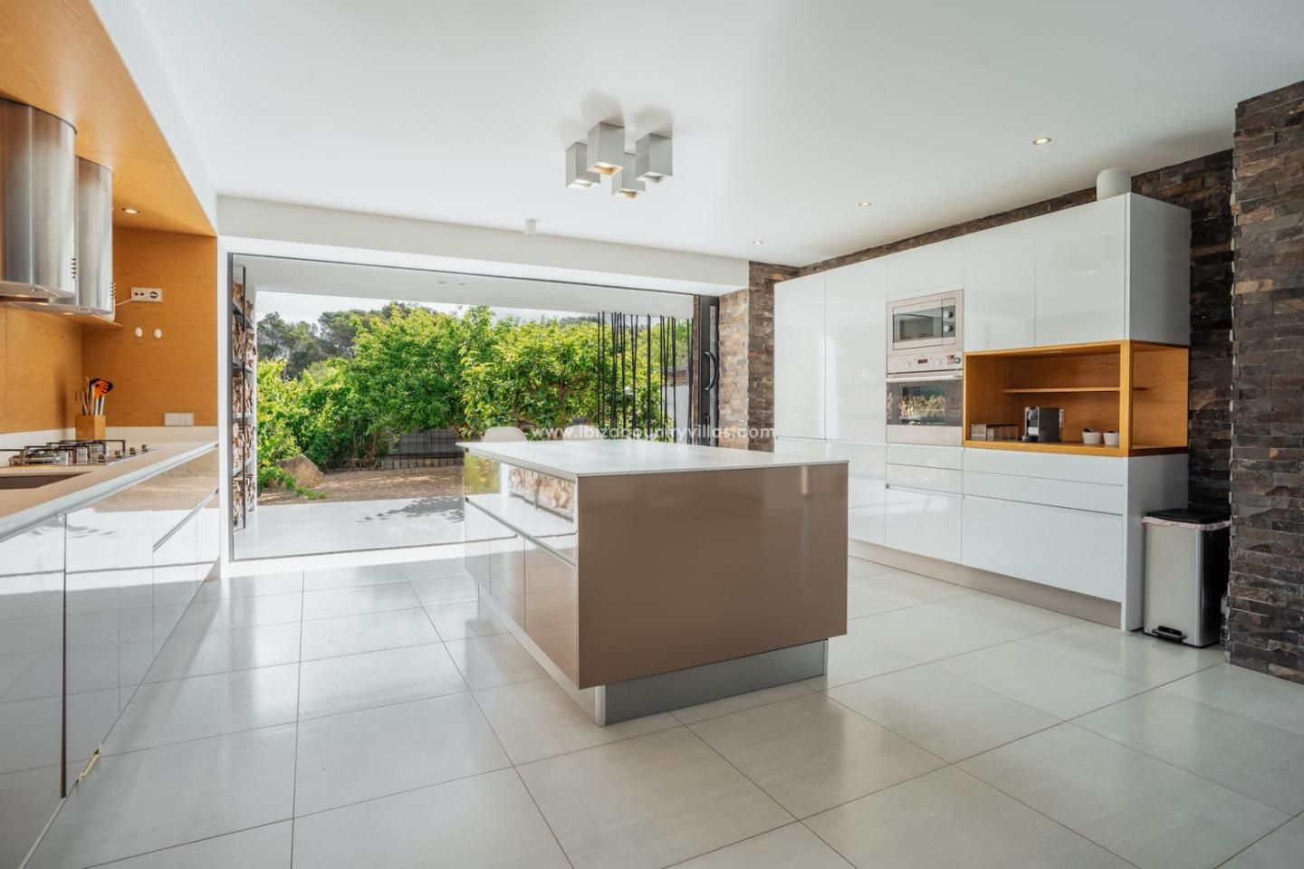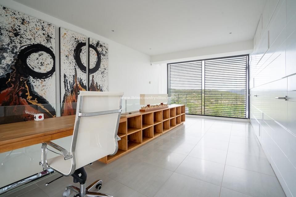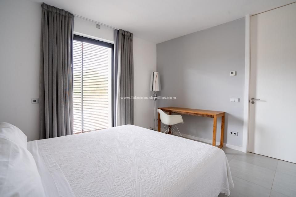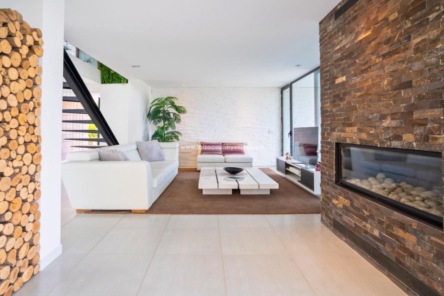 Situada en un entorno tranquilo y bien conectado, esta propiedad se alza sobre una parcela rústica de 5.390m² con acceso rápido desde la carretera principal que une Ibiza con San Antonio. Construida en 2003 y cuidadosamente mantenida, destaca por su arquitectura de líneas rectas, simetría y funcionalidad.La vivienda, con 495m² construidos, se distribuye en dos plantas y ofrece cuatro habitaciones y tres baños. En la planta principal, accesible desde la cocina o desde la entrada principal, encontramos un amplio salón con chimenea y salida directa al jardín, un comedor con vistas a la piscina y una cocina espaciosa con isla central. También dispone de lavadero, una habitación con salida a la terraza y un baño completo para invitados. Esta planta es ideal para personas con movilidad reducida.En la planta superior, la suite principal cuenta con baño privado y terraza propia. Dos habitaciones adicionales, ambas con terrazas privadas, comparten un baño completo. Además, hay una luminosa zona de trabajo con una gran mesa de madera, perfecta para despacho o estudio.El exterior ofrece terrazas cubiertas, zona chill out, piscina rectangular de 10x4,4m, comedor al aire libre con barbacoa y dos accesos independientes: uno con portón automático y aparcamiento cubierto para dos coches, y otro con espacio para varios vehículos o camiones.La casa está equipada con calefacción por suelo radiante, aire acondicionado por estancias e internet por fibra óptica. La seguridad está garantizada con sistema de alarma y puertas blindadas.Dispone de fosa séptica, pozo con abundante agua y un sótano diáfano con múltiples posibilidades.Además, cuenta con licencia turística para 8 personas.Una propiedad funcional, sólida y bien ubicada, lista para entrar a vivir.