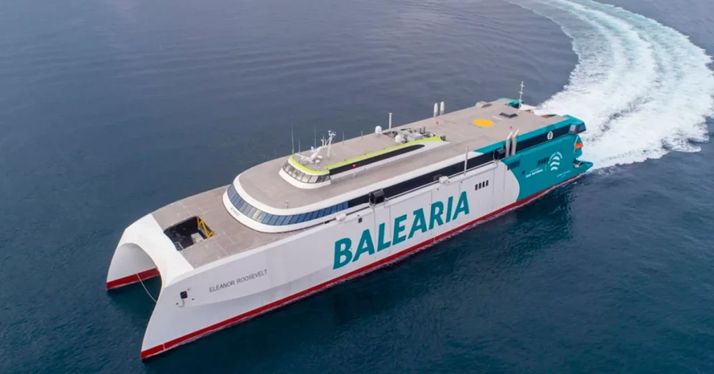 Baleària’s Eleanor Roosevelt is the world’s first fast ferry with natural gas engines and runs on the Palma – Ibiza – Denia route.