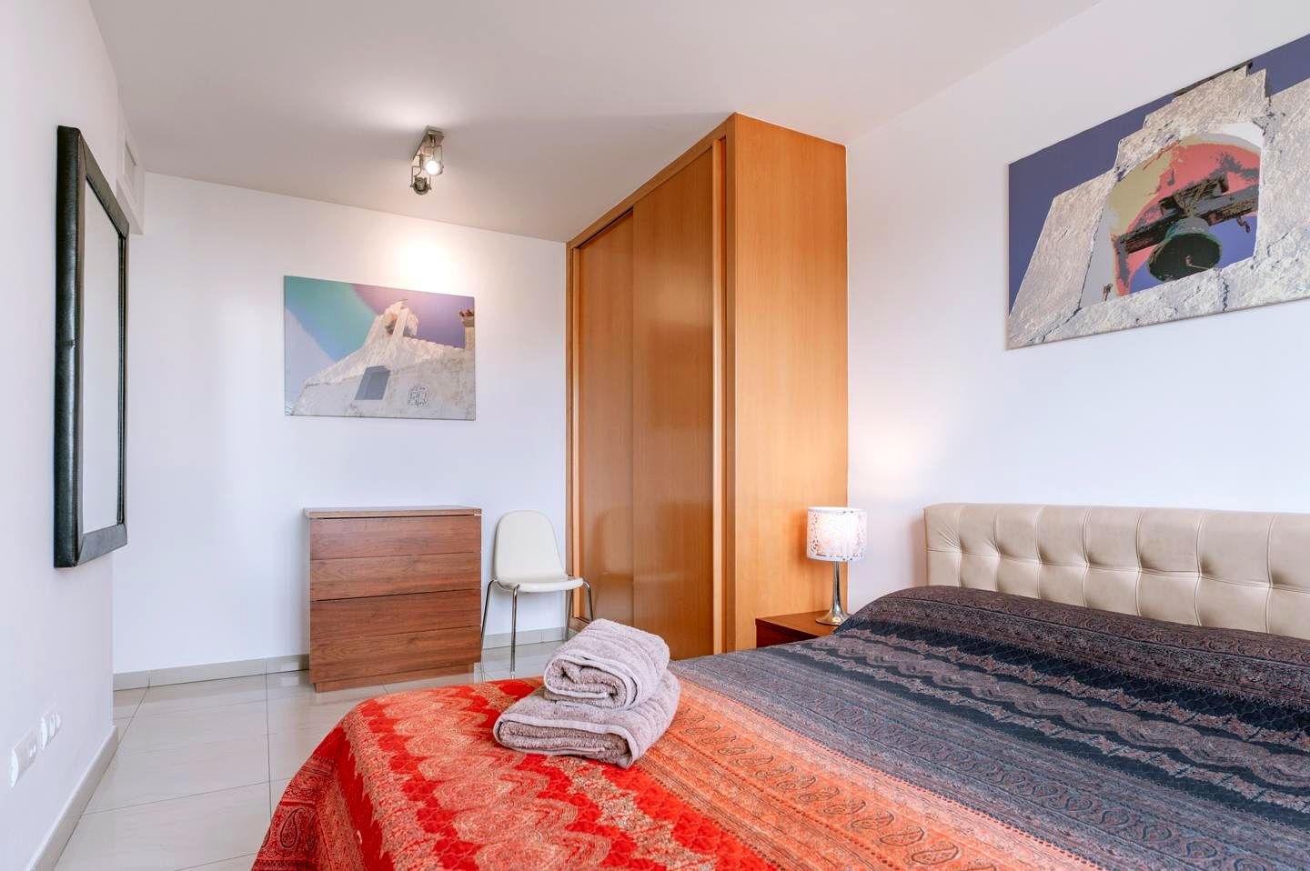 This penthouse is located in a tranquil neighborhood just minutes from Ibiza Town and Playa d’en Bossa. Surrounded by lush hills, the area provides peace and quiet while remaining close to Ibiza’s most sought-after hotspots. Whether you’re unwinding on the golden beaches nearby or exploring the charming streets of Ibiza Town, this location is an ideal base. Playa d’en Bossa, renowned for its lively beach clubs and fine dining, is within easy reach for those seeking vibrant nightlife and luxury experiences. This area grows in popularity each year and offers a wide range of nearby amenities. Additionally, the airport is just a 10-minute drive away, ensuring seamless connectivity. This penthouse is perfectly positioned for both permanent living and unforgettable holiday escapes.