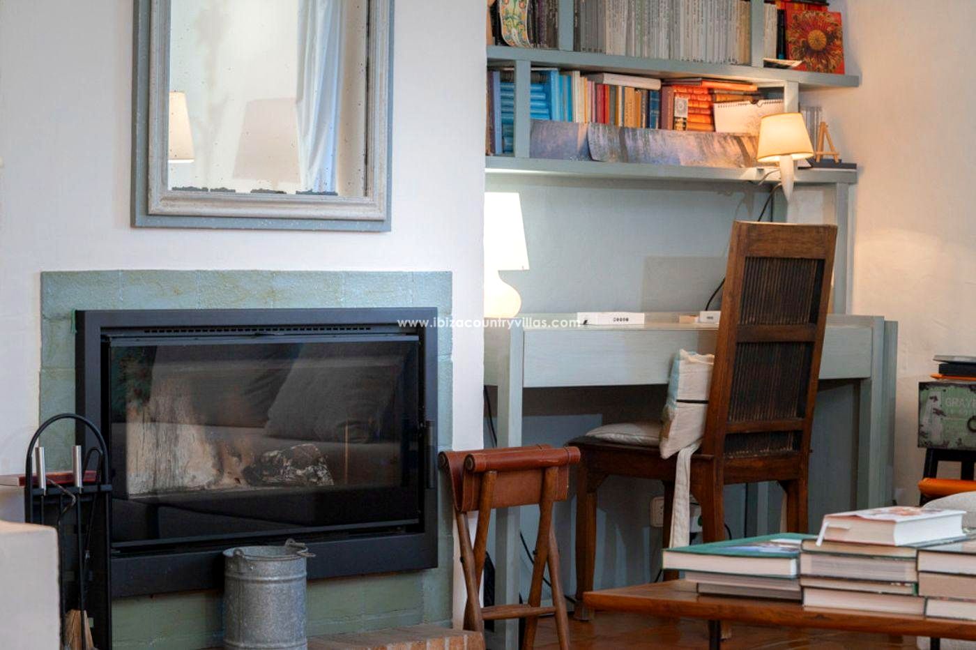 The duplex is arranged over several levels and features a bright dining area with a fully equipped kitchen, a cosy living room with fireplace and balconies, and a bedroom with en-suite bathroom. From the upper level, a private terrace offers stunning panoramic views over Ibiza town, the port, the marina and the surrounding hills.