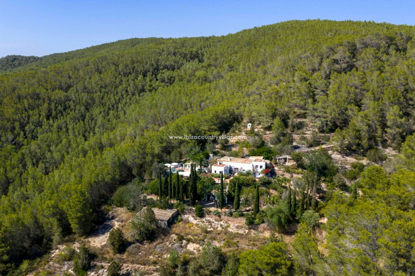 Among the pine hills that separate Santa Eulalia from San Lorenzo is this characterful property, a tranquil retreat that combines nature, privacy, and excellent connectivity to the most prominent towns and services in central-north Ibiza.