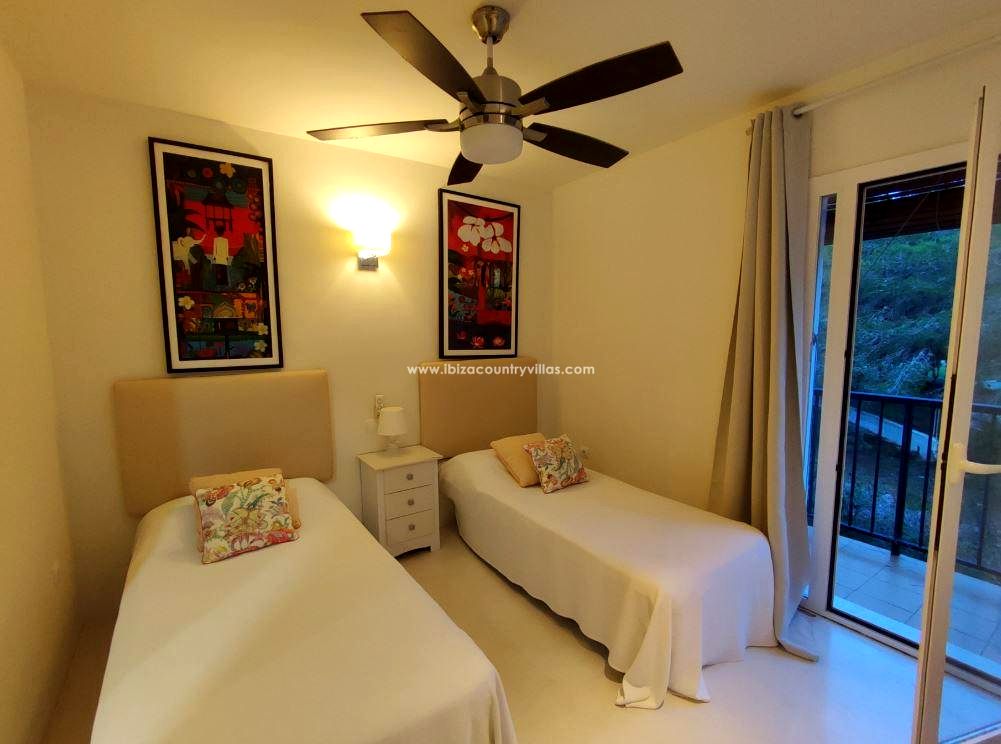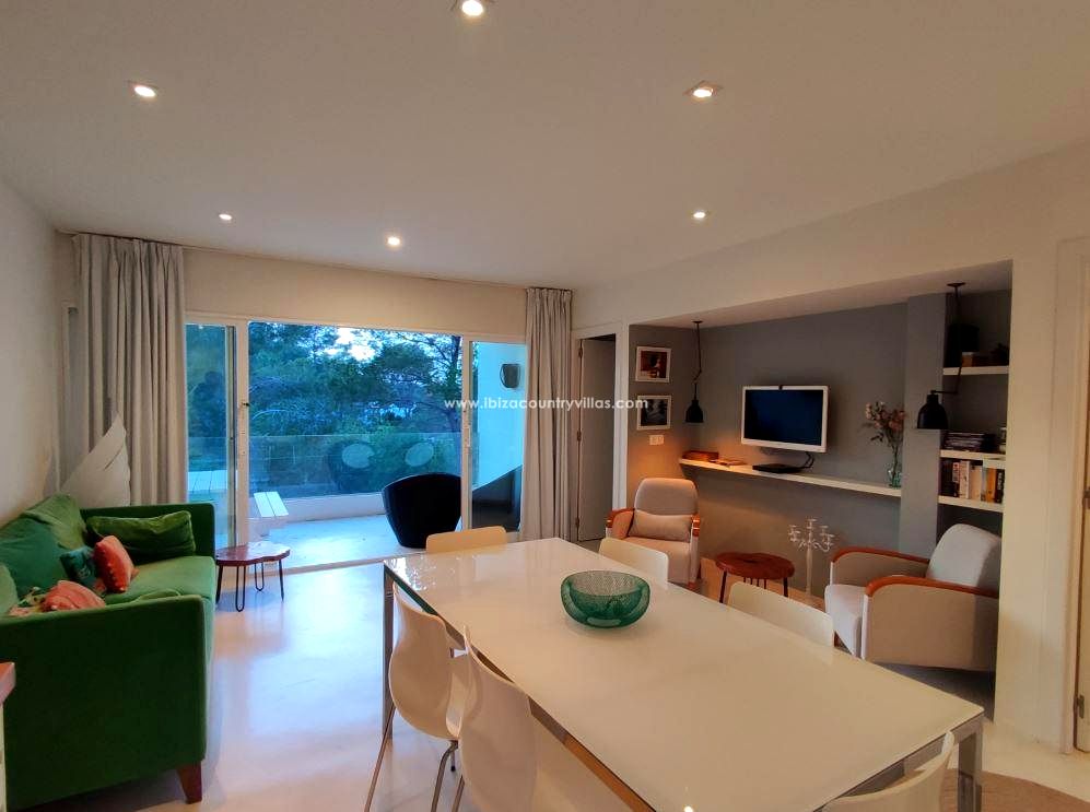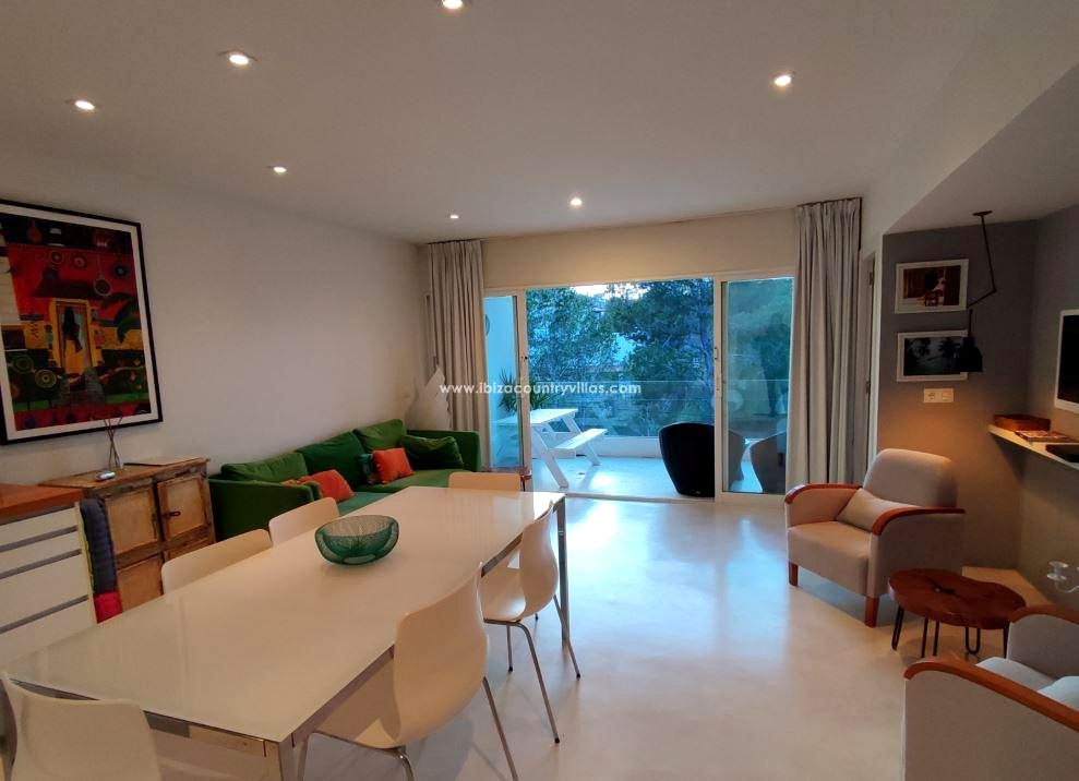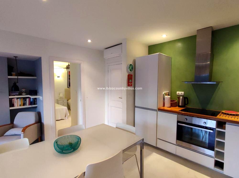 Este encantador apartamento con vistas al mar se encuentra en un complejo residencial de estilo ibicenco con piscina comunitaria, a tan solo 10 minutos a pie de la playa de Cala Vadella, una de las calas más apreciadas del suroeste de Ibiza.