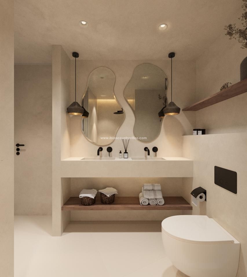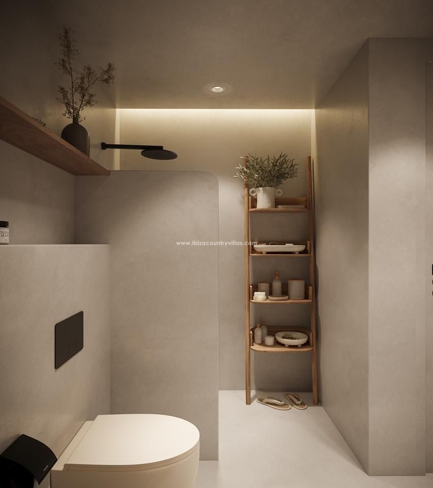 El apartamento cuenta con dos amplios dormitorios y dos elegantes baños, ambos con un estilo minimalista y cálido. La suite principal destaca por su sencillez sofisticada: una cama doble espaciosa, iluminación ambiental y una atmósfera relajante que invita al descanso. Los baños, revestidos en microcemento y equipados con duchas tipo walk-in, combinan diseño y funcionalidad para un confort moderno.