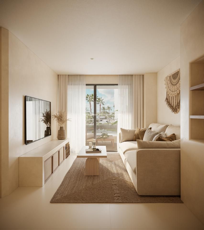 Desde el primer momento, el ambiente transmite calma y armonía. Los tonos suaves, los materiales naturales y los acabados de alta calidad se combinan para crear un espacio fluido y acogedor. Sus 103 m² se distribuyen en un amplio salón de planta abierta con cocina de diseño integrada, equipada con una cómoda barra americana, perfecta para desayunos tranquilos, comidas informales o cenas íntimas con amigos.