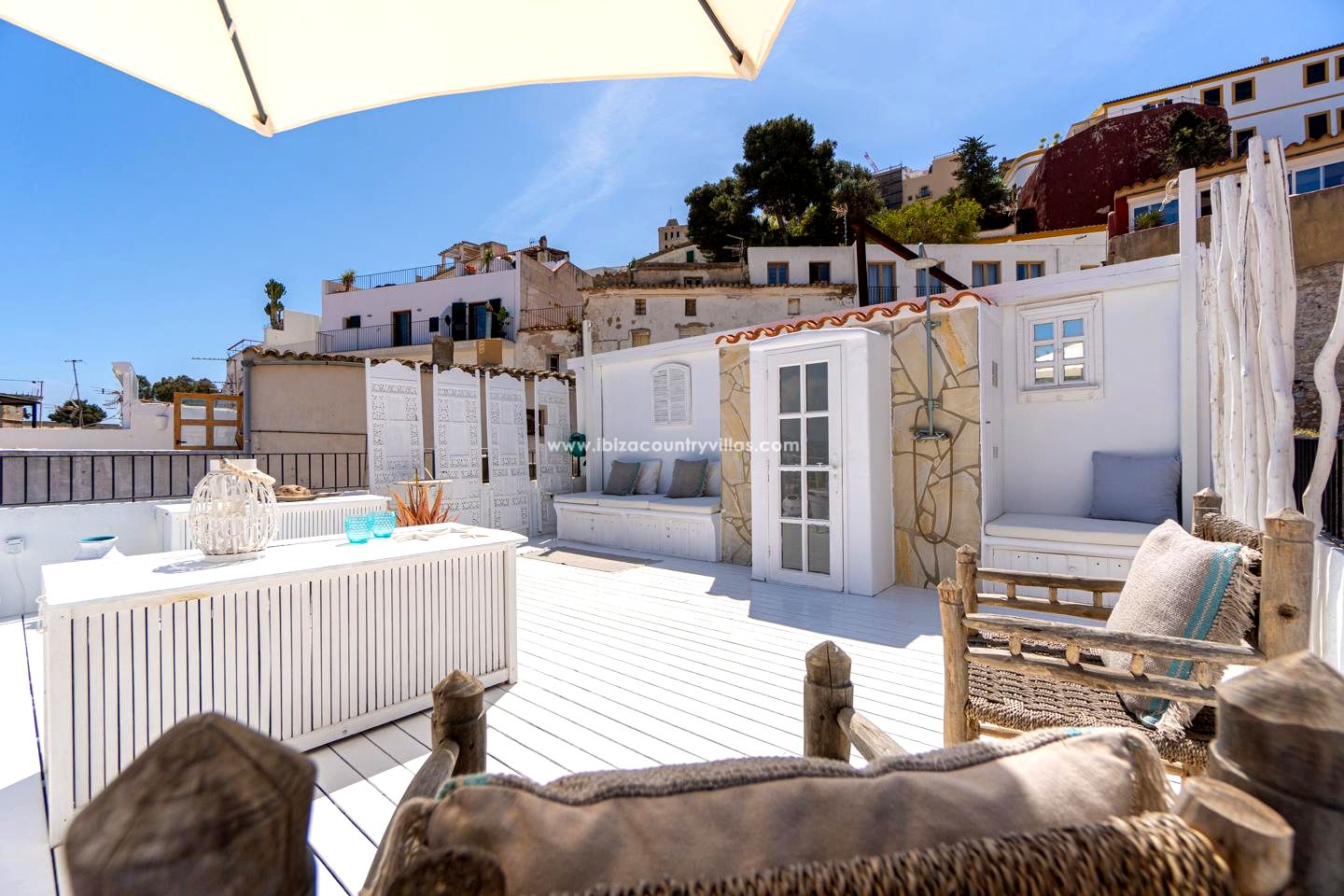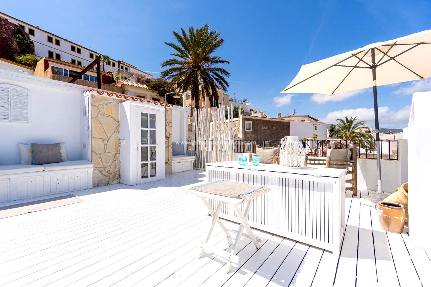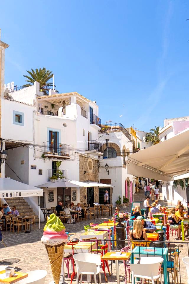 La zona de Dalt Vila engloba el verdadero carácter y vitalidad de la isla, desde las calles de guijarros hasta el bullicio de las tiendas y restaurantes, es verdaderamente la zona más emblemática de la isla. Tiendas y supermercados están a sólo 2 minutos a pie y hay un hermoso paseo de 15 minutos a lo largo del Boulevard que te lleva a la playa de Talamanca o un paseo de diez minutos que te lleva a la playa de Figueretas.