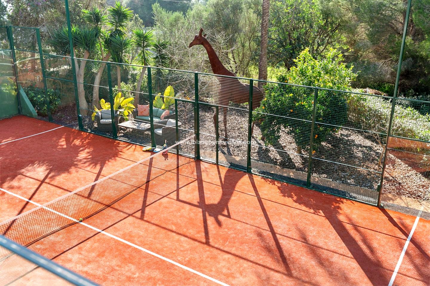 Para quienes valoran el bienestar y la actividad física, la finca ofrece algo verdaderamente especial en Ibiza: una pista privada de pádel, gimnasio y pista de tenis propios. Un lujo poco común que transforma la vivienda en un verdadero refugio de estilo de vida activo y equilibrado. Todo ello con la tranquilidad de una entrada privada y un recinto completamente cerrado.
