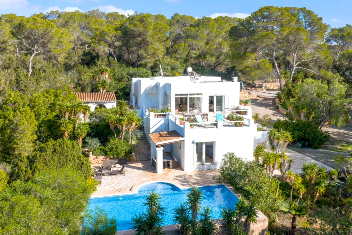 Situada en un enclave natural privilegiado en la costa oeste de Ibiza, esta villa mediterránea ofrece privacidad absoluta, tranquilidad y proximidad a una de las playas más apreciadas de la isla. Rodeada de frondosos pinares y con vistas abiertas al mar, la propiedad permite disfrutar del Mediterráneo en un entorno sereno y protegido.