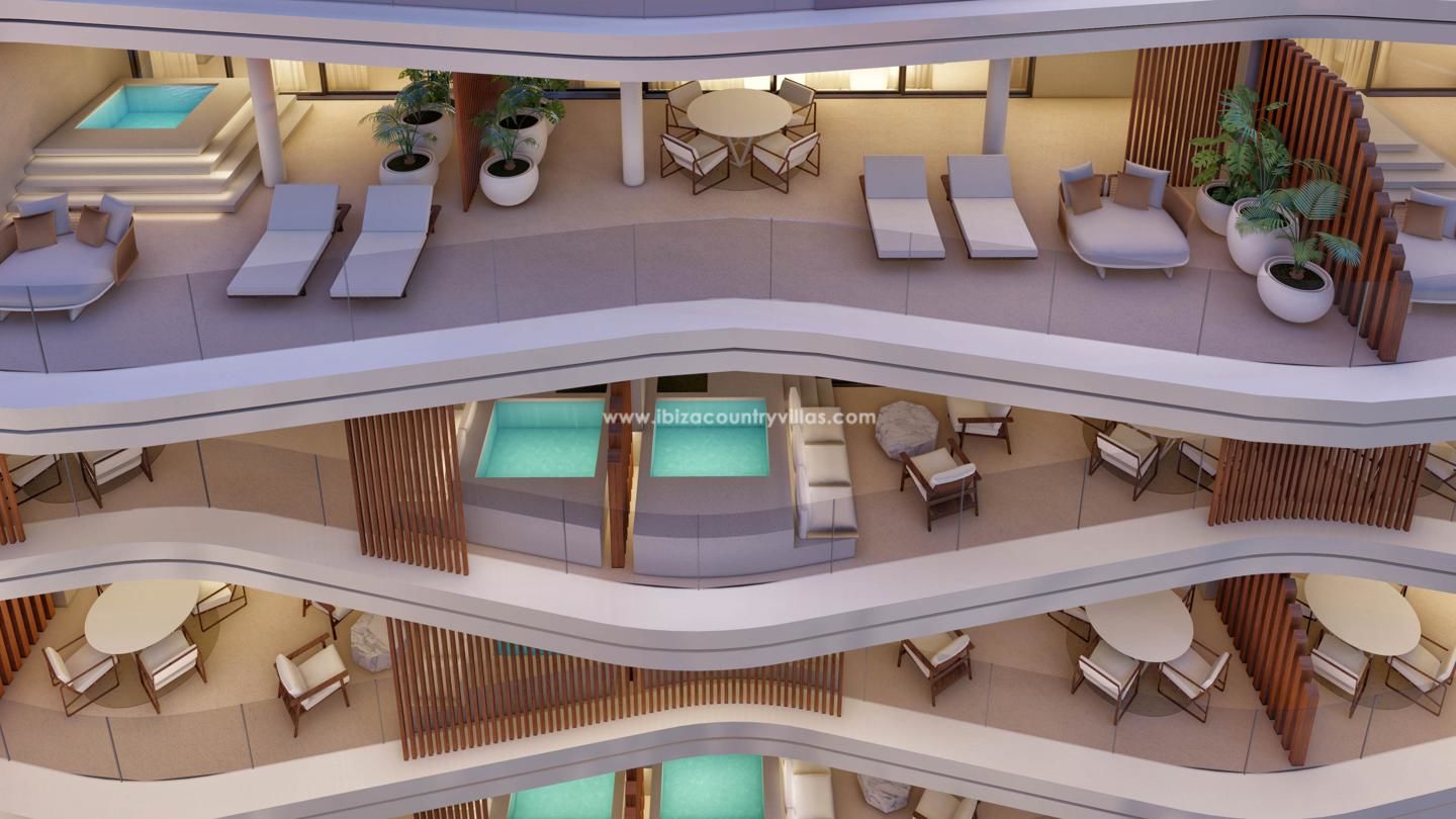 Waves es un exclusivo proyecto de apartamentos de 2, 3 y 4 habitaciones en un residencial junto a la marina de Santa Eulalia en Ibiza. Piso con terminación de alta gama, espacios abiertos y con amplias zonas exteriores. Con fácil acceso a la playa, dos piscinas, seguridad las 24 horas y un clima muy agradable durante todo el año.