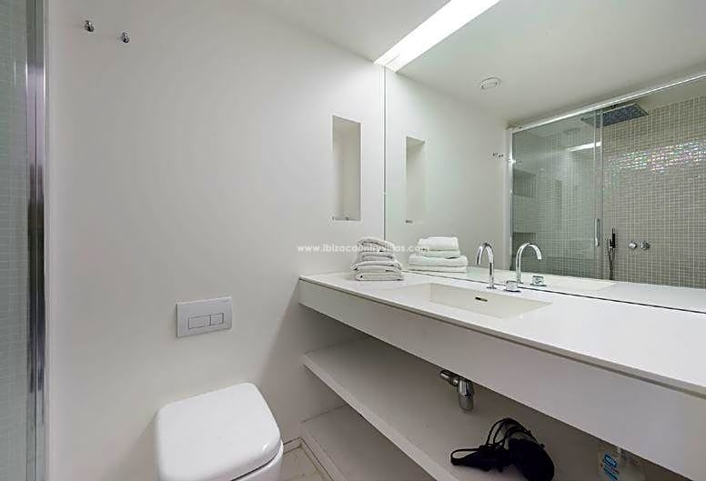 Este espacioso apartamento cuenta además con un amplia terraza con sol de tarde con vistas al mar y la ciudad de Ibiza. Ideal para familias que busquen el confort de disfrutar de espacios amplios y con mucho espacio para almacenaje gracias a la cantidad y la amplitud de los armarios empotrados.