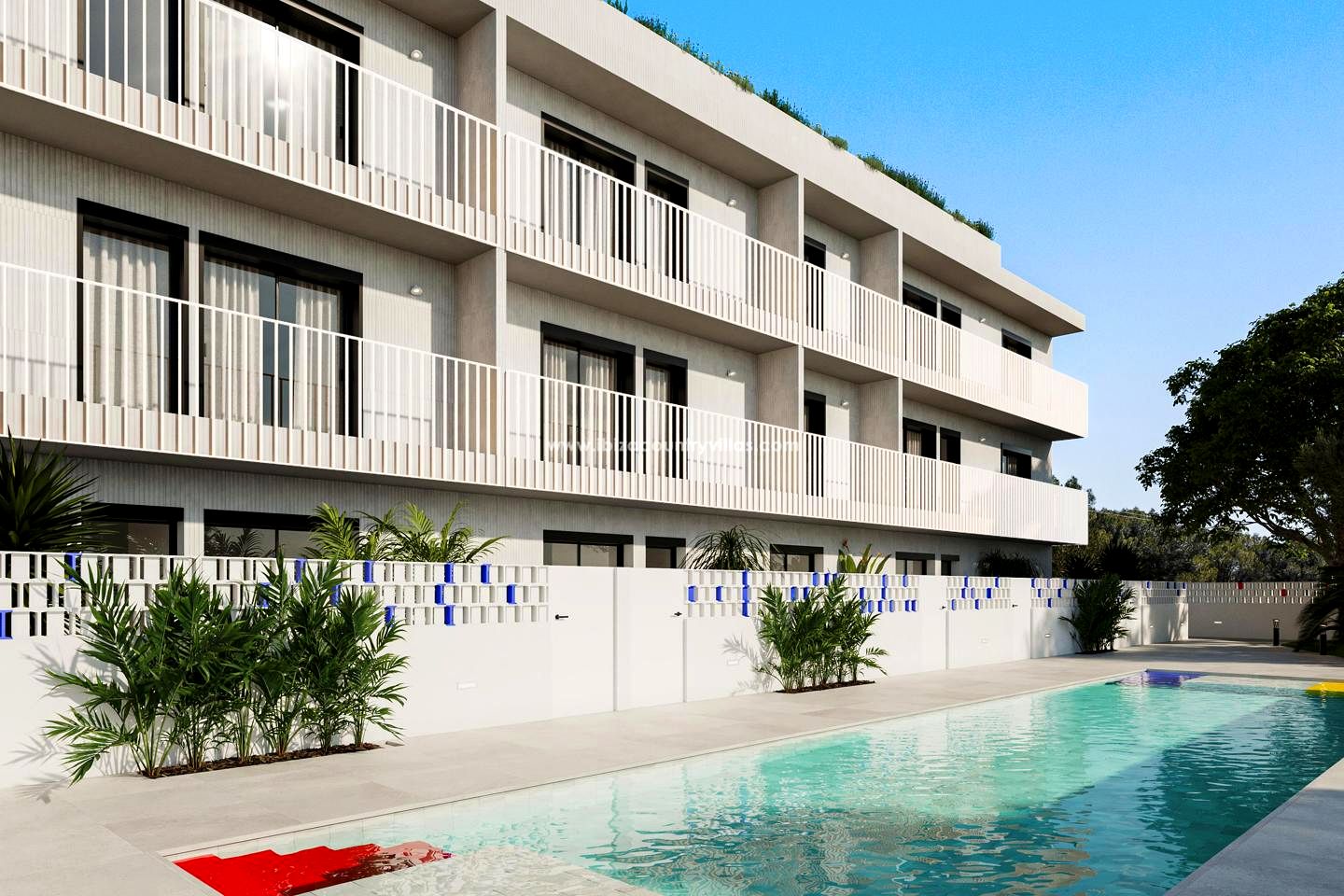 El diseño de apartamento atravesado permite maximizar la luz natural y la ventilación cruzada. Las viviendas en planta baja cuentan con terrazas o jardines privados, mientras que las plantas superiores disponen de amplios balcones. La cocina está totalmente equipada con isla y disponible en tres estilos: Azul, Blanco o Madera.