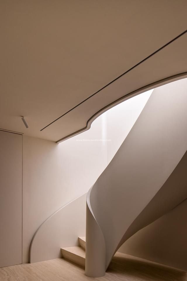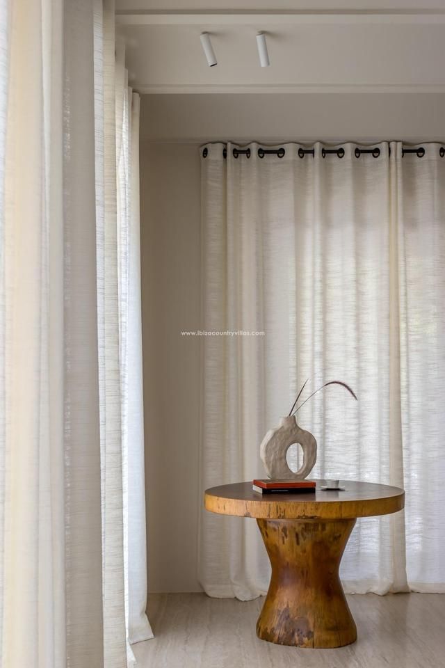 Entre y sienta la armonía. La luz se cuela por los tragaluces, baila por los techos curvos y le conduce a espacios que parecen íntimos y amplios a la vez. Todo fluye sin esfuerzo. De la cocina al salón y a la terraza, no hay barreras, sólo transiciones. Cada ventana es un lienzo que enmarca árboles de Sabina, bosques de un verde intenso y destellos del lejano azul del mar.