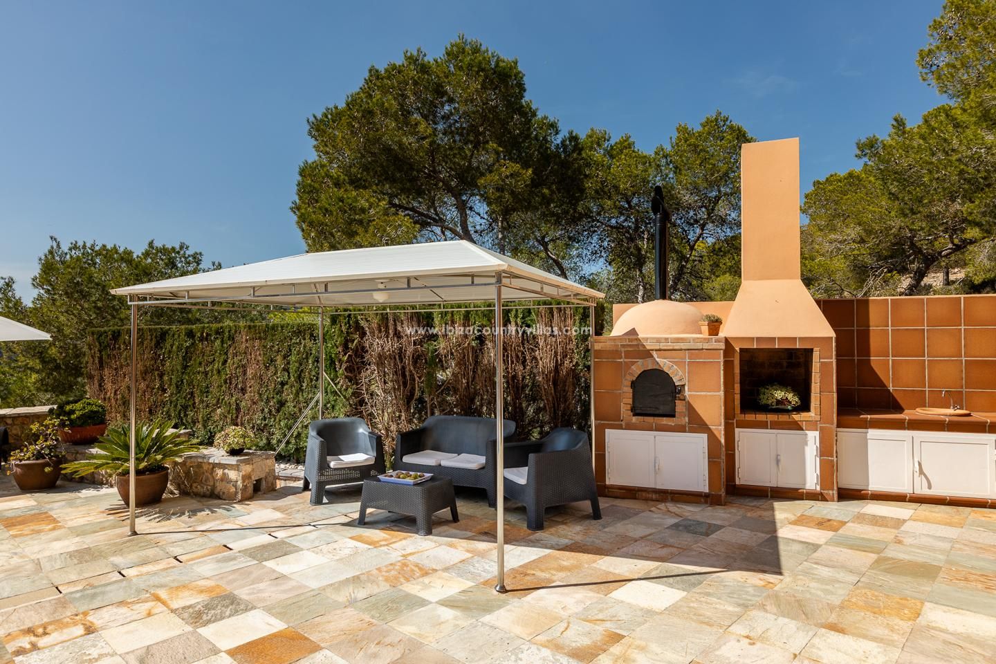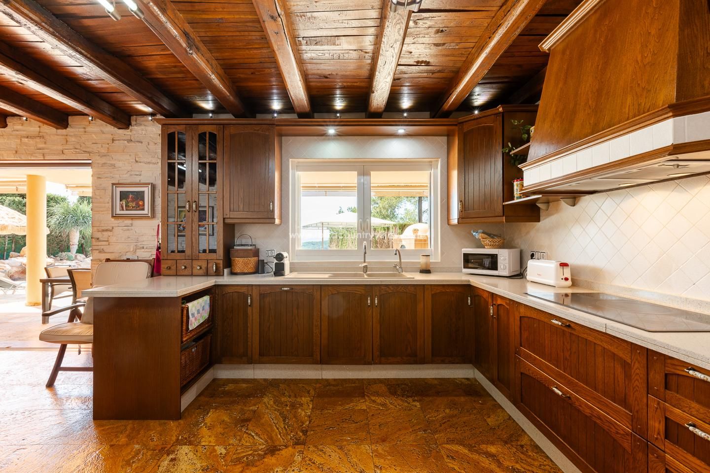 Al ingresar a la propiedad, te recibirán una amplia terraza y un hermoso jardín, ideales para disfrutar de momentos al aire libre. El interior de la casa cuenta con una cocina amueblada, una acogedora chimenea y una decoración que refleja el encanto rústico de una finca campestre. Además, podrás disfrutar de una refrescante piscina al aire libre, perfecta para relajarte en los cálidos días de verano.
