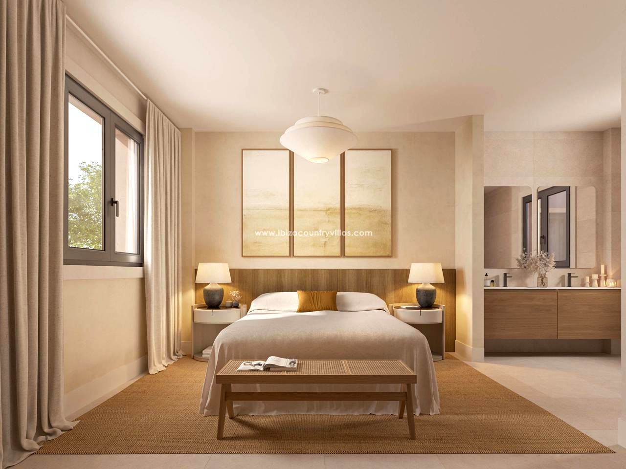 Cada vivienda ha sido cuidadosamente diseñada con materiales locales de alta calidad, tonos naturales y acabados que se integran perfectamente en el paisaje ibicenco. Los grandes ventanales y espacios abiertos maximizan la entrada de luz natural y conectan el interior con el exterior.